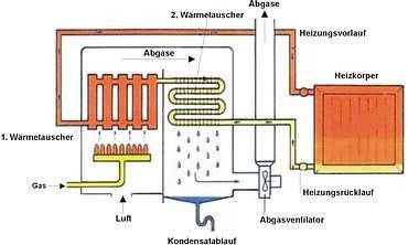 Heizungsrücklaufwasser eine Abkühlung der Abgase unter ihren Taupunkt,
