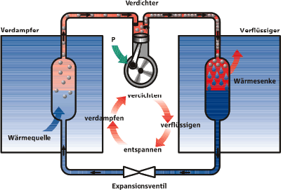 Effekte, die in einer Wärmepumpe Verwendung finden können. Die